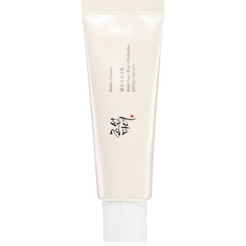 Αντηλιακή κρέμα προσώπου Relief Sun Rice + Probiotics από την Beauty Of Joseon που εξασφαλίζει υψηλή προστασία (SPF50) από την ηλιακή ακτινοβολία, ενώ ταυτόχρονα ενυδατώνει εντατικά την επιδερμίδα. Διαθέτει κρεμώδη σύνθεση, εμπλουτισμένη με εκχυλίσματα ρυζιού και δημητριακών που έχουν υποστεί ζύμωση και είναι πλούσια σε βιταμίνες B, C, E, αμινοξέα και μεταλλικά στοιχεία.