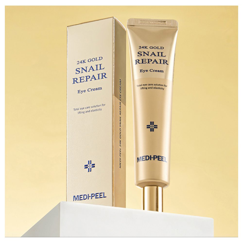Η Medi Peel 24K Gold Snail Repair Eye Cream είναι ένα πολυτελές προϊόν περιποίησης που απογειώνει τη φροντίδα της περιοχής των ματιών. Με ενεργά συστατικά όπως ο πολύτιμος χρυσός 24 καρατίων και το εκχύλισμα σαλιγκαριού, προσφέρει βαθιά θρέψη, επανόρθωση και άμεση λάμψη.